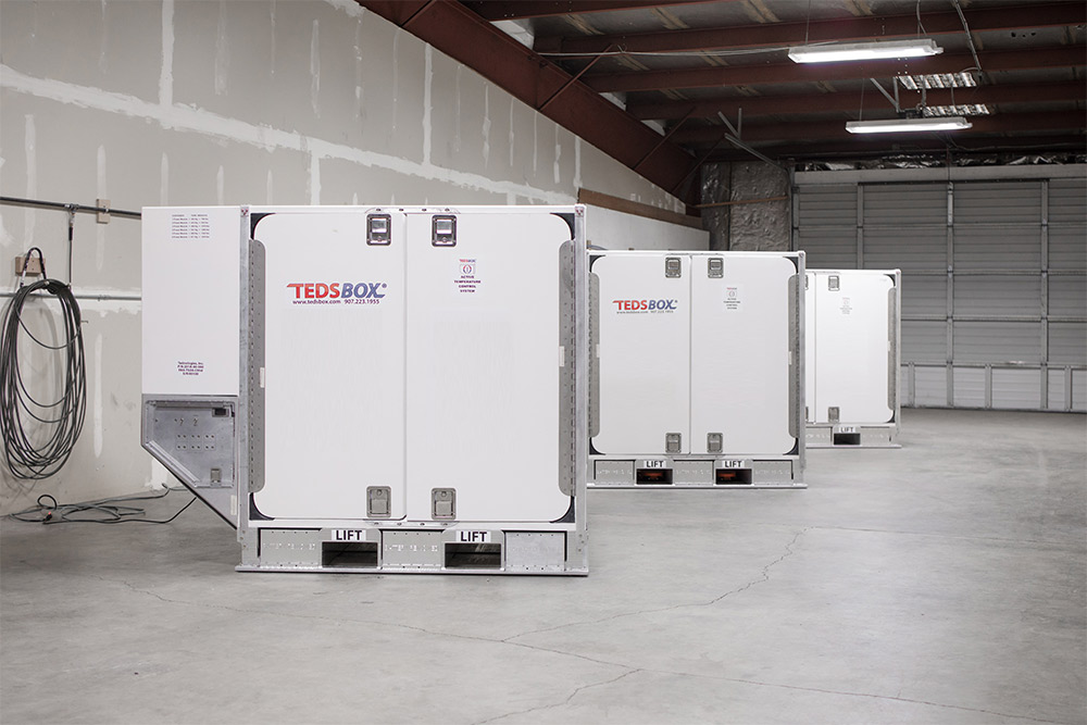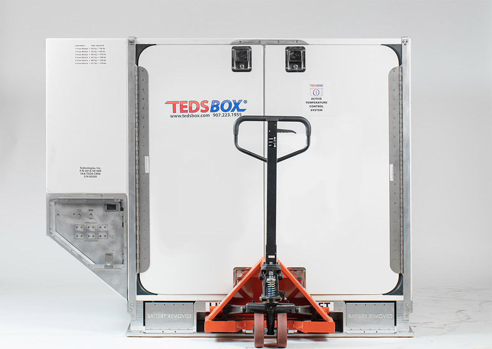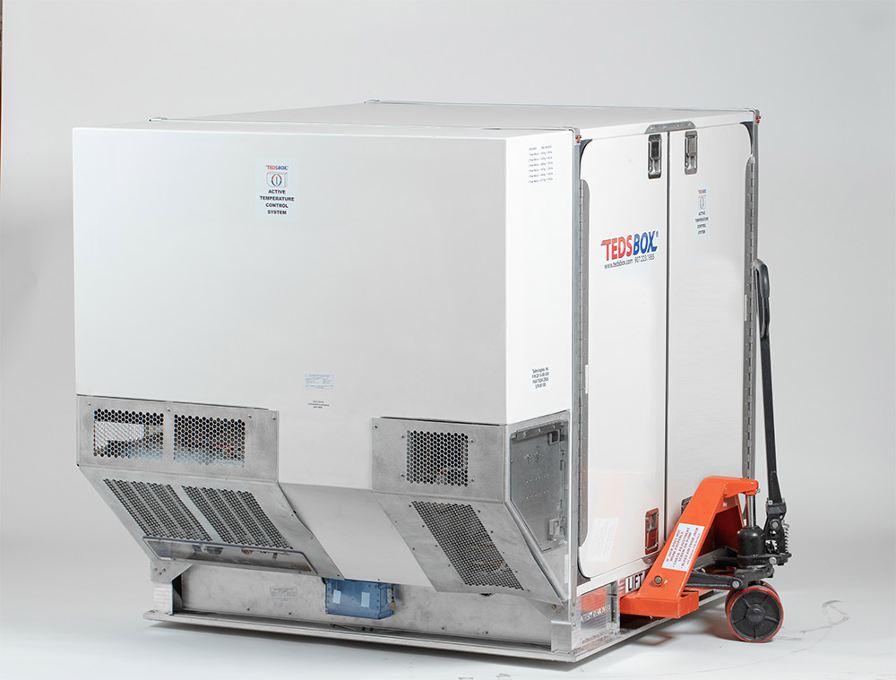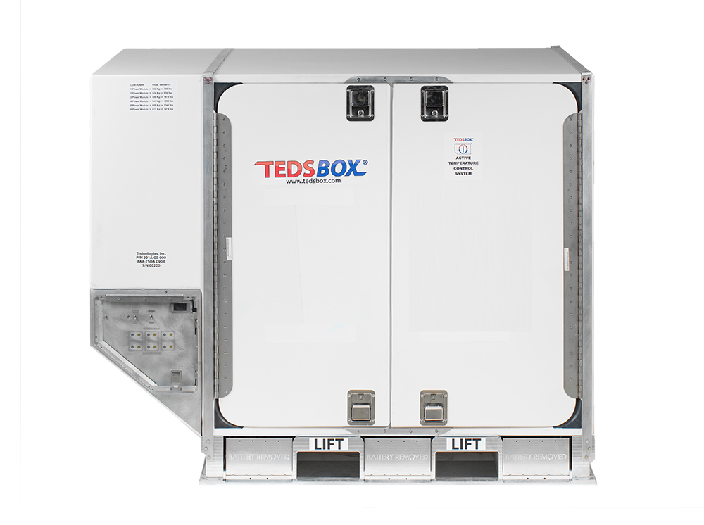 The TEDSBOX® active RKN (LD3) provides a secure multimodal cold chain cargo solution that can be optimized to meet your needs. The TEDSBOX® RKN is an active cold chain air cargo container that heats and cools within +/- 2°F [1.1°C] of the selected setpoint. The box can maintain any setpoint between 32-95°F [0-35°C] without the need for additives such as dry ice. The TEDSBOX® RKN is designed around the actual needs of logisticians dealing with problematic perishable markets such as pharmaceuticals and other high value temperature sensitive goods. Careful consideration has been given to how cold chain products are handled by end users during loading and unloading cargo, multimodal transportation, and warehouse operations. By using the TEDSBOX® active RKN, logisticans avoid high infrastructure and operations costs associated with traditional cold chain service. The TEDSBOX® active RKN was designed to bridge the cold chain logistics gaps in a cost-effective manner that other alternatives failed to consider. This allows logisticians to offer door-to-door, uninterrupted cold chain transportation services.